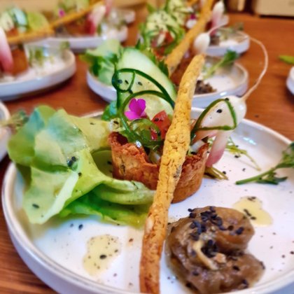 Es gibt viel Obst, frische Pflanzenmilch, hausgemachte Aufstriche, Marmeladen, Pasten, Pfannkuchen, Muffins, Crumble und … wer weiß?