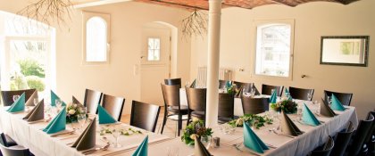 In unserem „Pavillon“ finden bis zu 100 Gäste Platz, im „Kaminzimmer“ bis zu 35 Gäste und in der „alten Küche“ bis zu 15 Gäste.