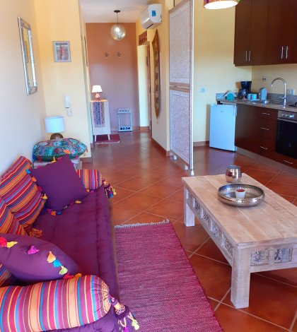Die Quinta bietet 2 verschiedene Optionen, das Namaste-Appartement, von 1 bis 4 Personen, und die mexikanische Suite von 2 bis 5 Personen, beide verfügen auch über ein Wohnzimmer.