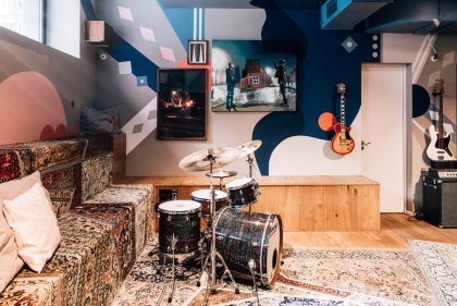 Ein Fitnessraum im Keller ermöglicht sportliche Aktivitäten und im ersten Stock des Hauses befindet sich sogar ein hauseigenes Tonstudio, in dem regelmäßig Musik produziert und Konzerte veranstaltet werden.