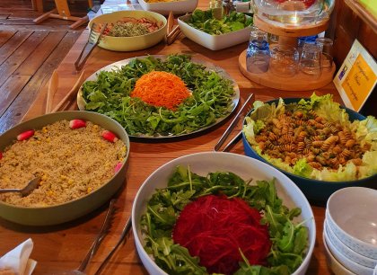 Die Balance-Küche ist vegetarisch und vorwiegend pflanzlich gemäß der makrobiotischen Ernährungslehre. Die reine Makrobiotik hat das Hotelier-Paar mit der Zeit als zu einschränkend erlebt und hat sie für sich und ihre Gäste weiterentwickelt.