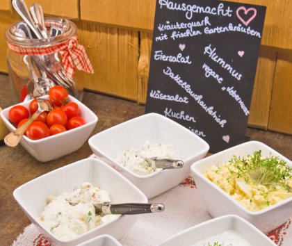 Auf unserem Frühstücksbuffet finden Sie eine Auswahl an hochwertigen veganen Speisen, sowie ausschließlich regionalen und meist biologischen Produkten, die von Landwirten und Erzeugern aus dem Allgäu stammen. Einiges an Obst, Gemüse und Kräutern kommt aus dem hauseigenen Permakultur-Garten. Daraus stellen wir selbst unsere veganen Aufstriche, Marmeladen und Chutneys her.