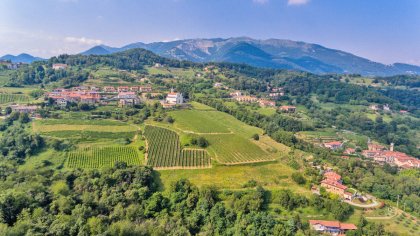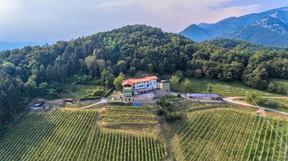 Unser Bauernhaus liegt auf einem unserer Weinberge, 550 Meter über dem Meeresspiegel, mit Blick auf die darunter liegende Landschaft, so weit das Auge reicht.