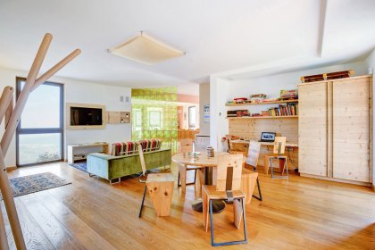 Das gesamte Haus befindet sich in einem alten Gebäude aus dem achtzehnten Jahrhundert. Wir haben es im Jahr 2011 renoviert, wobei einige Originalteile erhalten und der Rest mit ökologisch erneuert wurde. Wir sind als KlimaHaus zertifiziert (das erste Bauernhaus in Italien) und decken den größten Teil unseres Bedarfs mit selbst erzeugter Energie: durch Photovoltaik- und Solarthermieanlagen, Holzkessel und Wärmepumpe.