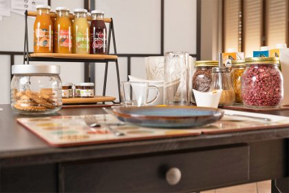 Unser reichhaltiges und abwechslungsreiches Frühstück ist überwiegend biologisch und 100% vegan. Das Frühstück wird im Aufenthaltsraum serviert. Sie können Kaffee, Tee, verschiedene pflanzliche Getränke, frische Croissants, getoastetes Brot, Marmelade, pflanzlichen Joghurt, Müsli, frische Säfte und Obst der Saison genießen.