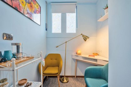 Die Leseecke im Zimmer ist ein besonderer, intimer Ort, an dem Sie entspannende Momente mit einem guten Buch und einer Tasse warmem Kräutertee oder Biokaffee