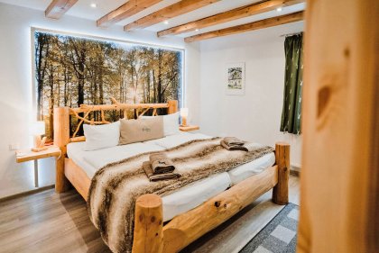Auf unserer Aussichtsbank mit Weitblick könnt ihr die Gedanken schweifen lassen. Oder einfach nur bei himmlischer Ruhe die Sonne auf dem Balkon im Blockhaus genießen. Mit dem Hund Wanderwege erkunden oder im nah gelegenen Waldsee abtauchen. Erholung mitten im Wald, wird euer einmaliges Erlebnis.