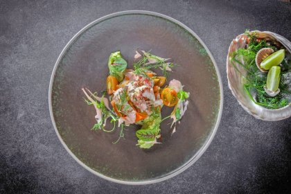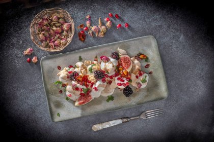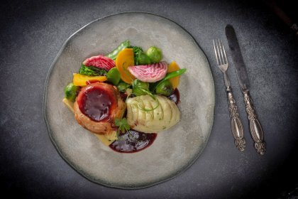 Das Küchenteam verwendet die besten Zutaten von lokalen Lieferanten und kreiert atemberaubende pflanzliche Gerichte, die kompromisslos köstlich, gesund und genussvoll sowie tierleid-frei, nachhaltig und saisonal sind, darunter Gerichte wie “Sticky Seitan Ribs”, “Mushroom Stroganoff Suet Pudding” und “Battered Banana Flower with Salt and Pepper Chips”. Zu den weiteren Gerichten gehören Zitronen-Thymian-Ballotine von gekräutertem Seitan mit knuspriger Polenta, geröstetem Paprikapüree und Karotten-Speck-Crisp, und als Dessert Granatapfel-Rosen-Mousse mit Vanille-Baiser, Rosen- und Kardamom-Creme, Früchten der Saison und Sesamkrokant.