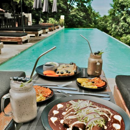 Als Lateinamerikas erstes veganes Hotel mit Meerblick sind wir stolz darauf, in unserem Open-Air-Restaurant ein vollständig pflanzliches Menü zu servieren, das mexikanische Tradition mit globalen Aromen verbindet