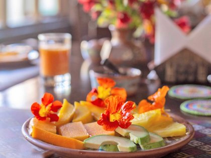 Die meisten Zutaten der vegetarischen Gourmet-Mahlzeiten sind biologisch auf dem Gelände von Willka T’ika gewachsen. Täglich werden frische Kräuter gepflückt, welche die Gäste jederzeit zu eigenen Heilkombinationen mischen können. Außerdem kann die Küche von Willka T’ika viele unterschiedliche Diätwünsche erfüllen.