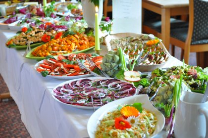 Im Restaurant wird zu allen drei Mahlzeiten ein köstliches, vegetarisches Büfett serviert in 100% Bio-Qualität – mal mecklenburgisch, mal italienisch, mal indisch zubereitet. Dabei haben sich die Köche auf diverse Lebensmittelunverträglichkeiten spezialisiert. Das frische Gemüse und die Kräuter kommen zum größten Teil aus der eigenen Bioland-Landwirtschaft. (DE-ÖKO-006). Gebäck und Brot stammen aus unserer Backstube.