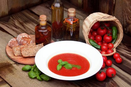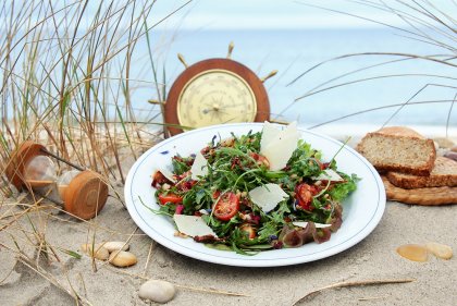 Die vegetarische Küche besteht aus frischen Zutaten. Die Salate, mit im eigenen Garten gewachsenen Kräutern und frisch gepresste Obstsäfte verwöhnen den Gaumen.