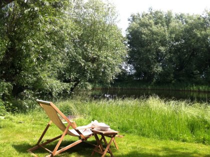 Am Haus gibt es einen großen Garten mit alten Obstbäumen und Liegewiesen, eine sonnige Terrasse direkt vorm Haus, ein Teichbiotop und einen Feuerplatz sowie Hühner, Katzen, einen friedlichen Hund, vier Ponies und ein Pferd. Zur Entspannung steht für unsere Gäste eine urige Fass-Sauna direkt am Teich bereit.