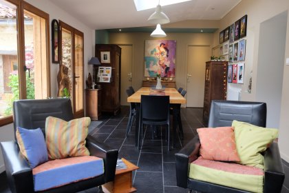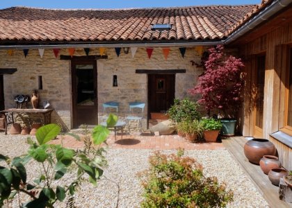 - Machen Sie Urlaub im romantischen Stil in der gemütlichen, separat gelegenen Studio-Gite im Erdgeschoss des Hofes, wo Sie ganz für sich sind (2 Erwachsene + 2 Kinder, April – November).