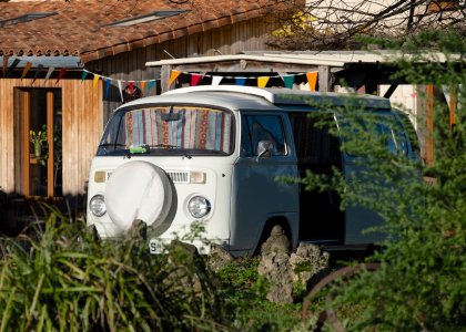 - Machen Sie einen Kurzaufenthalt im kultigen 1977er Vintage-VW-Kombi (2 Erwachsene, dauerhaft auf dem Gelände geparkt, Juni, Juli, August).