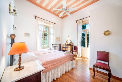 Hotel Archontiko Angelou ist nur fünf Minuten zu Fuß vom Strand entfernt (250 Meter). Das 1895 erbaute Anwesen liegt in einem ruhigen Garten von 5,500 Quadratmetern. Hohe, über hundert Jahre alte Bäume umgeben das Haus und spenden an heißen Sommertagen ihren wertvollen Schatten.